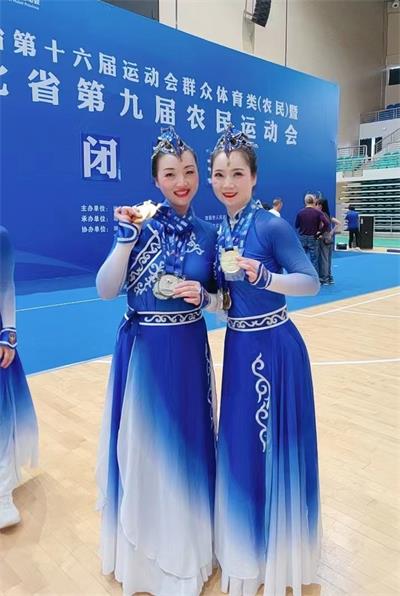熱烈祝賀謝芳同志(照片中第一排從左到右第三位)在湖北省第十六屆運(yùn)動(dòng)會(huì)群眾類(農(nóng)民)健身操團(tuán)體比賽中獲得一枚金牌,四枚銀牌,團(tuán)體總分第一的優(yōu)異成績(jī)。